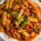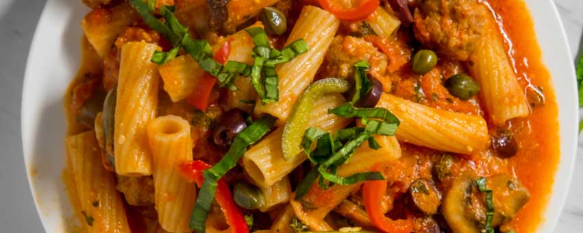 Ziti With Portobello Mushrooms, Caramelized Onions and Goat Cheese